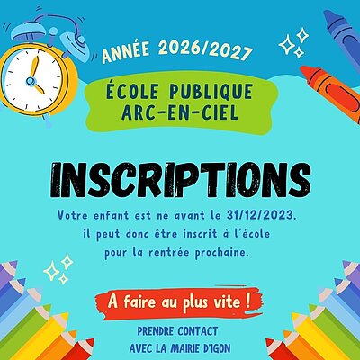 👉 Votre enfant doit être inscrit à l’école publique d'IGON pour la prochaine rentrée. L’instruction est obligatoire dès l’âge de 3 ans. Les...