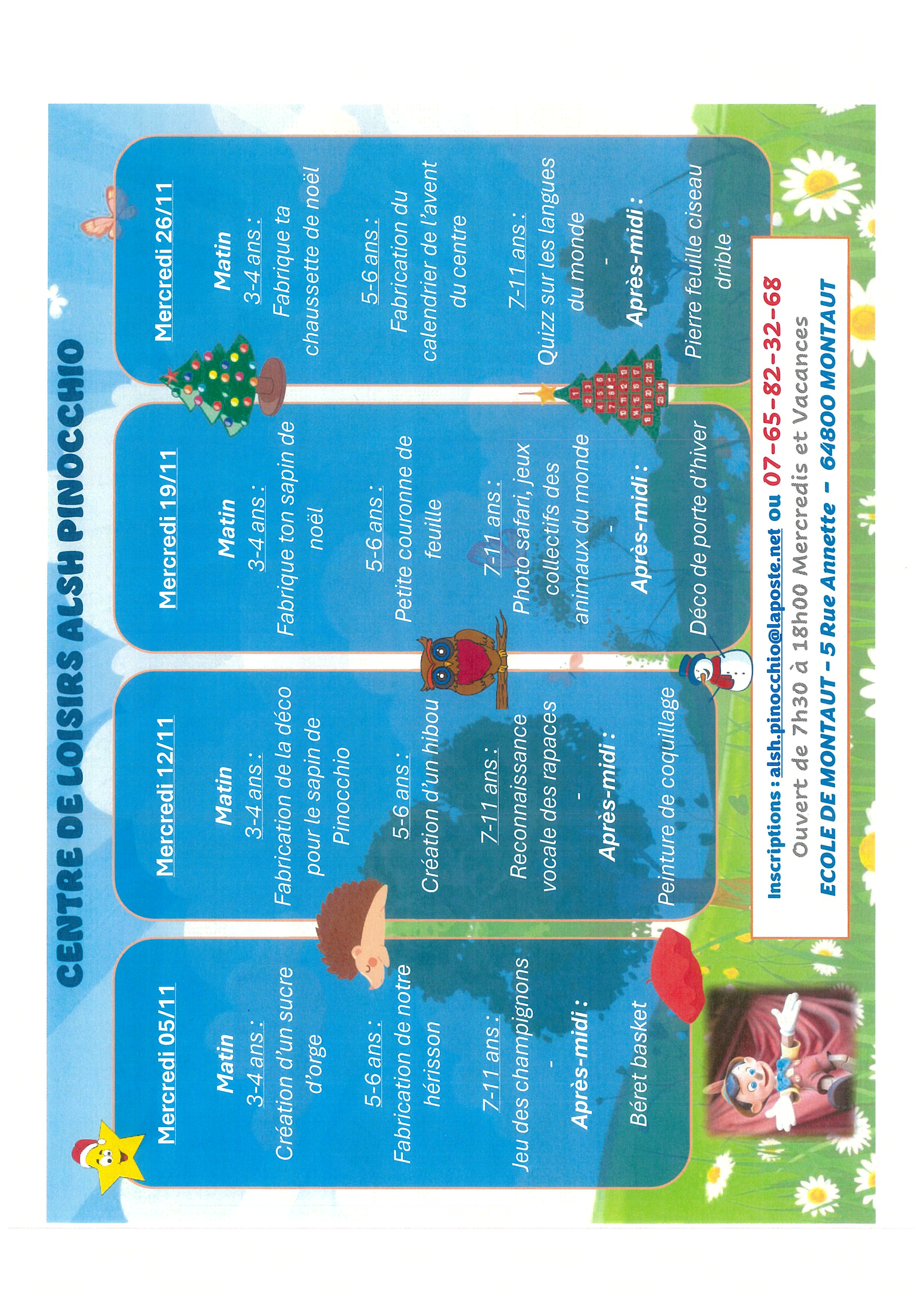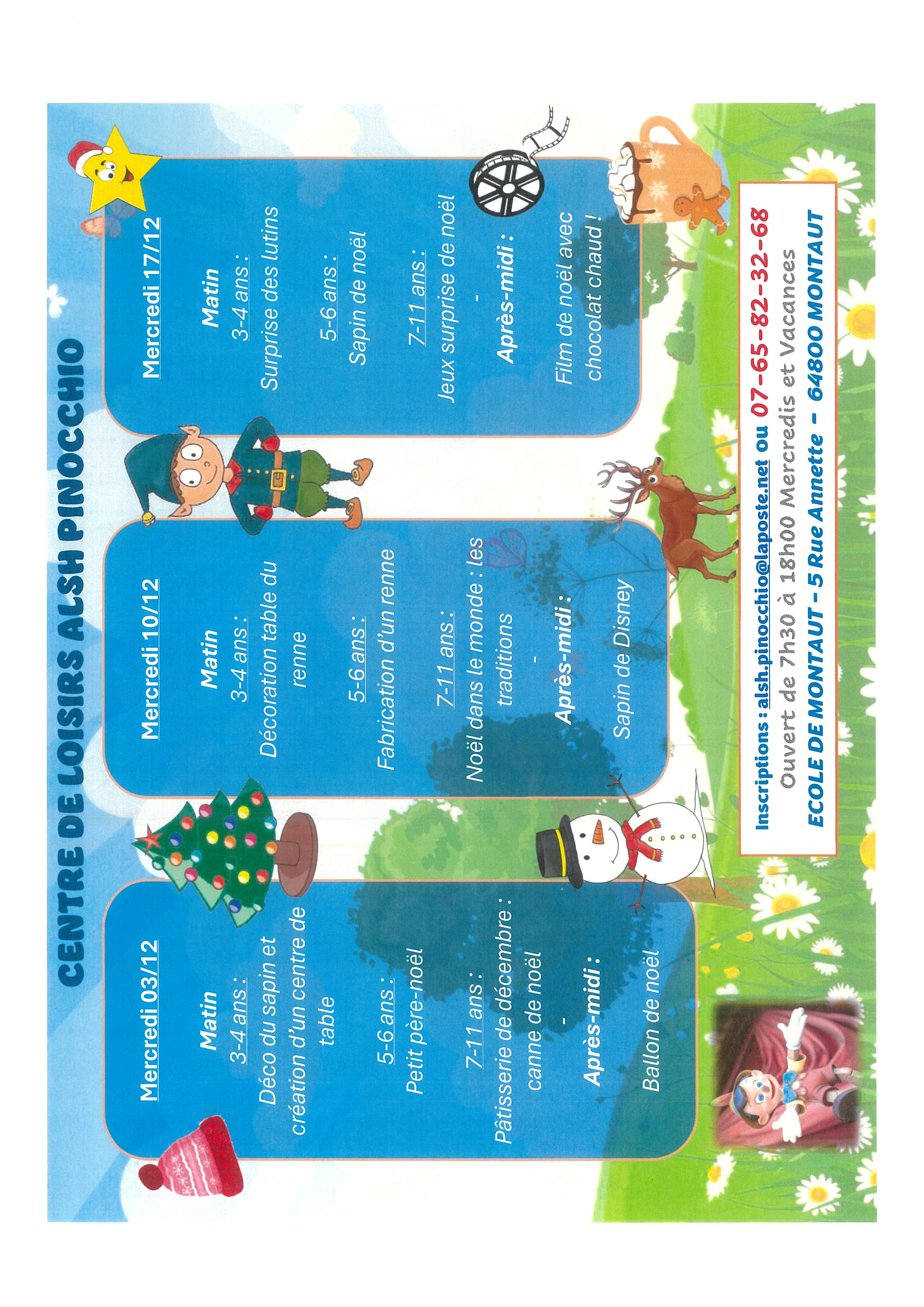 Renseignements au 07 65 82 32 68 ou par mail : alsh.pinocchio@laposte.net